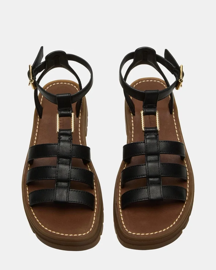 Elevate Your Style with the Jarelli Sandal. Featuring a Strappy Square-Toe Design and Platform, This Sandal Offers the Perfect Combination of Comfort and Chic. Take Your Look to New Heights with These Versatile and Fashionable Sandals.