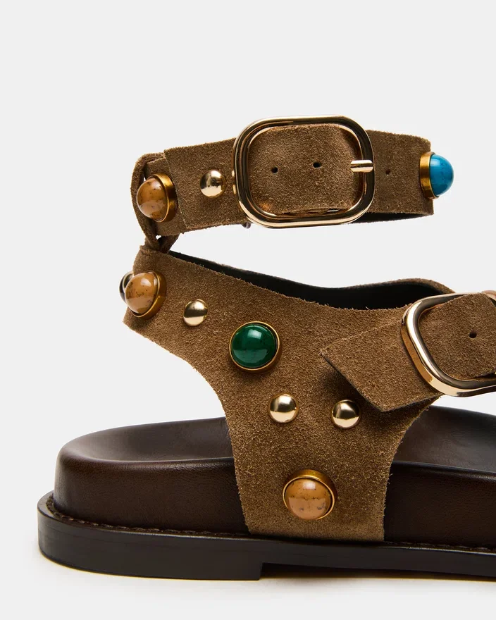 Expertly Crafted for Comfort and Style, the Linear Sandal Features a Secure Ankle Strap, Supportive Footbed, and Rounded Toe. With Stud Hardware Embellishments, These Strappy Sandals Are the Perfect Combination of Functionality and Fashion.