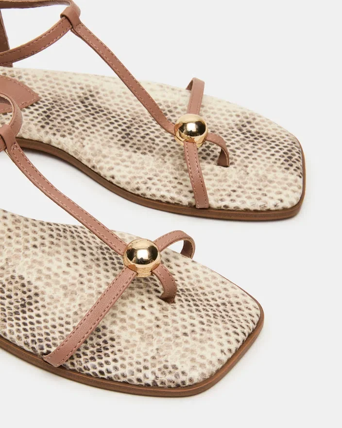 Elevate Your Look with the Ritzy Natural Snake Square-Toe Strappy Sandal, Expertly Designed for Both Style and Comfort. Its Modern Square-Toe Provides a Sophisticated Edge, While Delicate Straps Ensure a Secure Fit. Perfect for Dressing up or Adding Flair to Casual Outfits, This Sandal Combines Contemporary Design with Versatile Wearability.