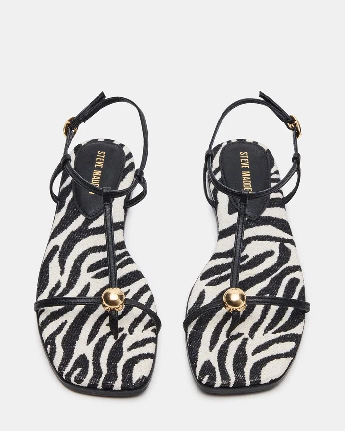 Elevate Your Look with the Ritzy Zebra Square-Toe Strappy Sandal, Expertly Designed for Both Style and Comfort. Its Modern Square-Toe Provides a Sophisticated Edge, While Delicate Straps Ensure a Secure Fit. Perfect for Dressing up or Adding Flair to Casual Outfits, This Sandal Combines Contemporary Design with Versatile Wearability.
