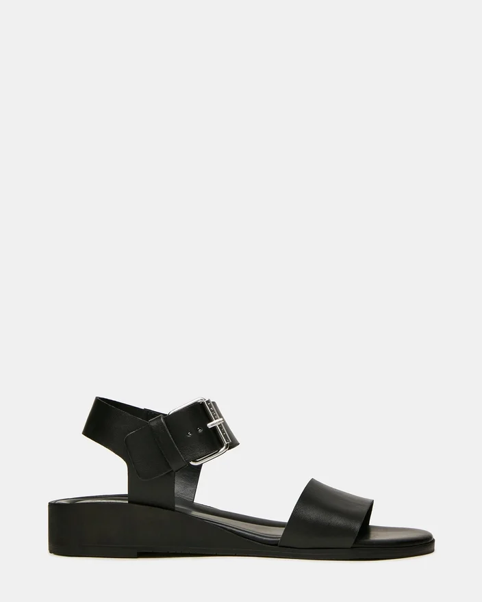 The Vaeda Black Leather Wedge Sandal Combines Style with Everyday Wearability. An Adjustable Buckle Strap Ensures a Customized Fit, While the Wedge Sole Delivers Reliable Support and a Subtle Lift. Whether You’re Heading to Brunch or Running Errands, This Sandal Adapts to Your Lifestyle with Understated Sophistication and All-Day Comfort.