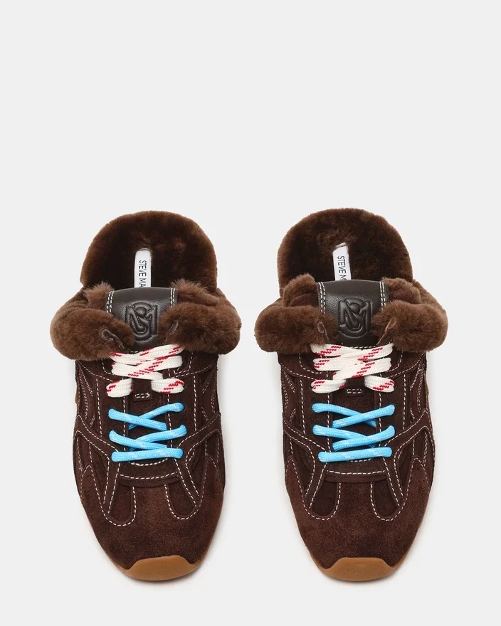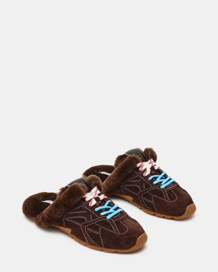 Aziel Mule Faux Fur Chocolate Brown Suede