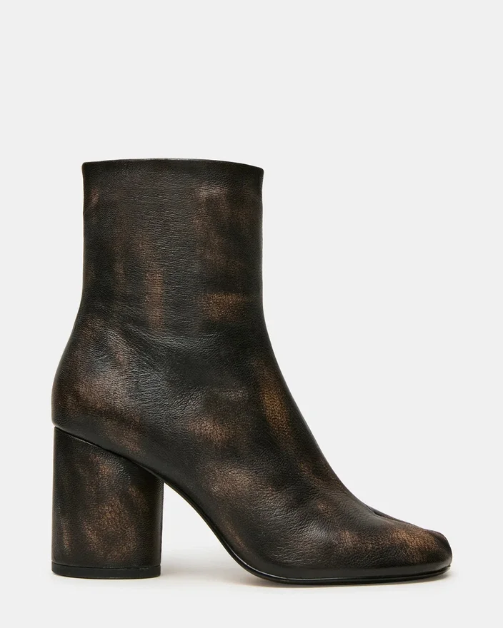 The Caro Brown Distressed Features the Distinctive Tabi Split-Toe Silhouette, Offering a Modern Aesthetic with Functional Comfort. A Sturdy Block Heel Provides Stable Support Throughout the Day While Maintaining a Sleek Profile. This Bootie Seamlessly Combines Elevated Style with Everyday Versatility.