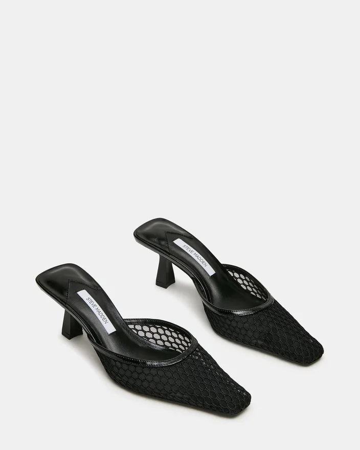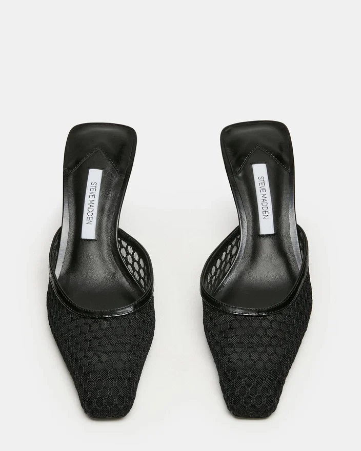 The Alyse Black Mesh Square-Toe Mule Delivers Understated Sophistication with Its Refined Silhouette and Kitten Heel. This Versatile Style Transitions Seamlessly from Office to Evening, Offering the Comfort of a Slip-On Design Without Compromising on Polish. The Structured Square Toe Provides a Contemporary Edge, While the Delicate Heel Height Ensures All-Day Wearability. An Essential Addition to Any Footwear Collection.