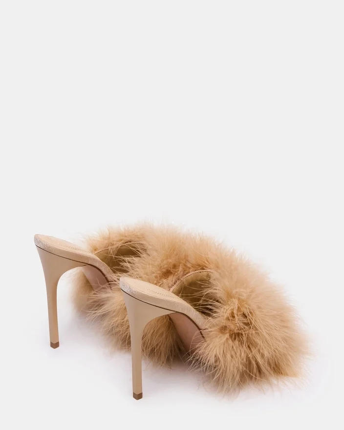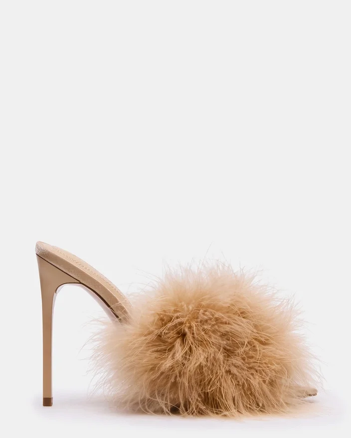 Elevate Your Style with the Ashbey Mule, Featuring a Sleek Pointed-Toe Silhouette and a Slender Stiletto Heel for a Refined Profile. Adorned with Delicate Feathers, This Design Adds a Touch of Sophisticated Flair, Perfect for Making a Statement at Any Event. The Slip-On Mule Construction Ensures Effortless Wear While Maintaining an Elegant, Fashion-Forward Look.