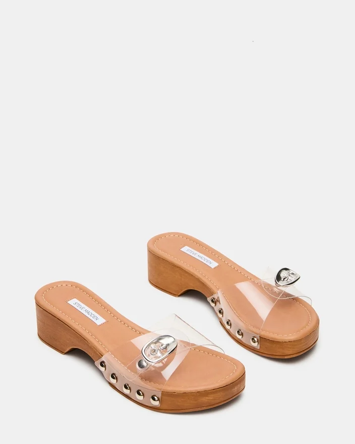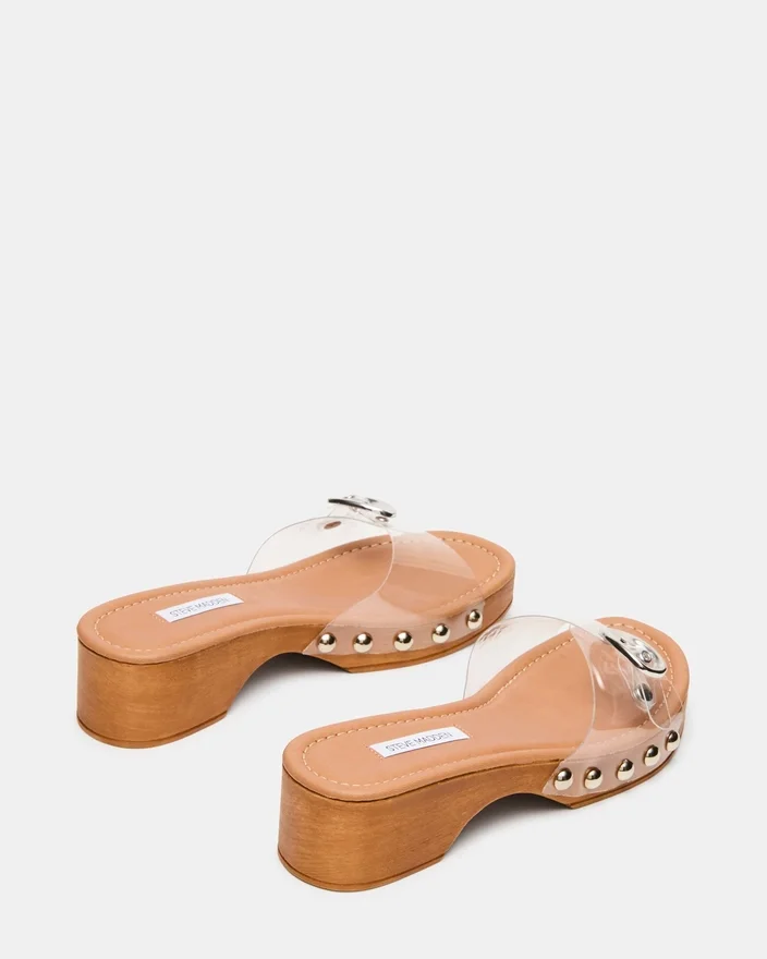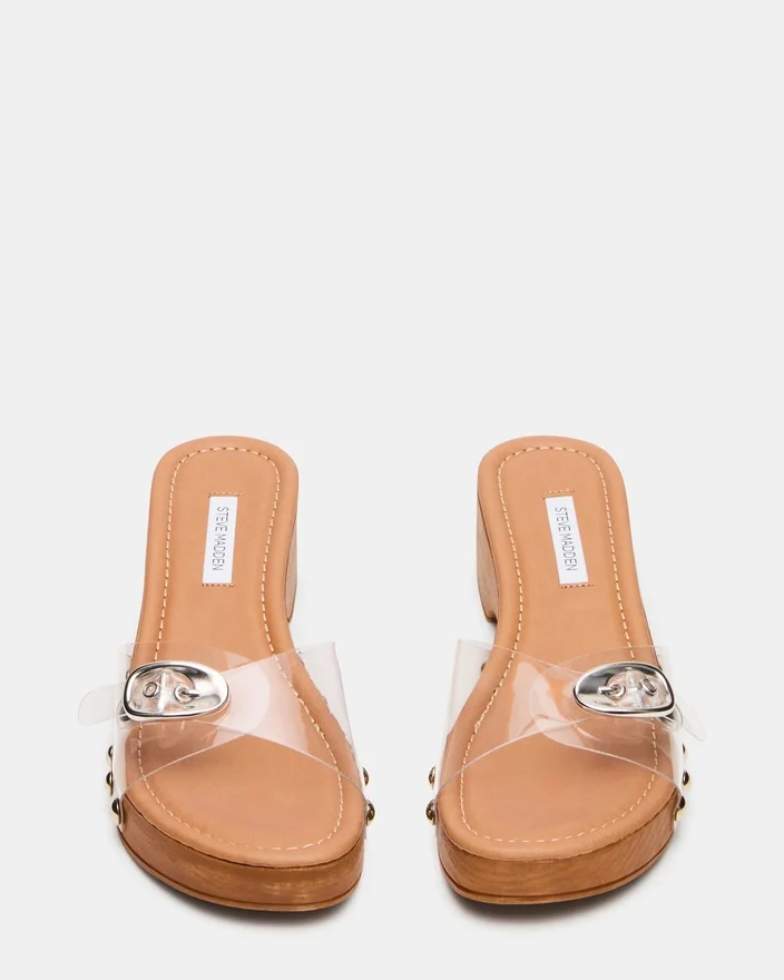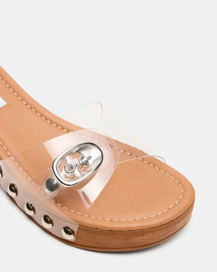 The Fredi Clear Mule Combines Contemporary Design with Practical Comfort. Featuring a Sturdy Platform Sole That Elevates Your Stride, This Sandal Showcases a Distinctive Buckle Strap Detail Across the Upper for Secure Support and Visual Interest. The Streamlined Silhouette Works Seamlessly from Casual Daytime Wear to Evening Occasions, Offering Versatile Styling Options.