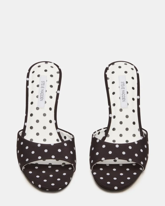 Crafted from Luxurious Materials, the Kendrix Black/White Polka Dot Mule Heel Features a Rounded-Toe Design for Added Comfort and Elegance. Perfect for Any Occasion, These Heels Effortlessly Elevate Any Outfit with a Touch of Sophistication.