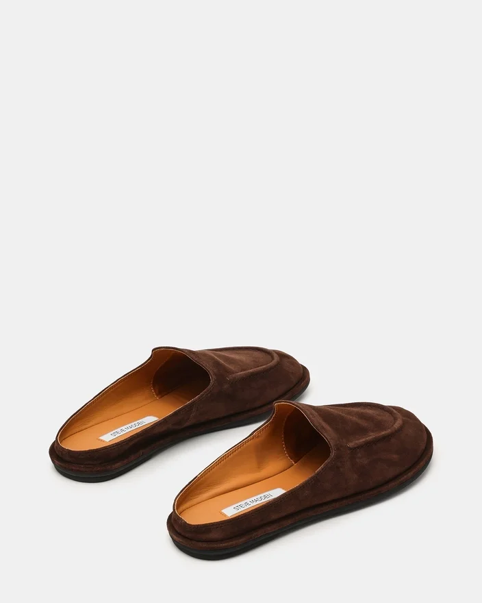 Effortless Sophistication Meets Everyday Comfort with the Harrington Chocolate Brown Suede Slip-On Flat. The Streamlined Silhouette Transitions Seamlessly from Casual Outings to Professional Settings, While the Flat Sole Provides All-Day Wearability Without Sacrificing Style. A Timeless Mule Design That Anchors Any Wardrobe with Understated Elegance and Practical Versatility.