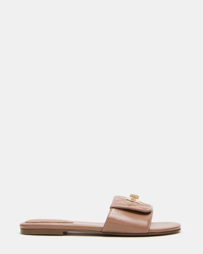 Expertly Crafted Quilted Slide Sandal Featuring a Distinctive Buckle Design. The Moreland Combines Luxurious Comfort with Sophisticated Style, Making It Perfect for Both Casual Outings and Elevated Occasions. The Quilted Design Provides Exceptional Cushioning While the Unique Buckle Adds a Contemporary Design Element.
